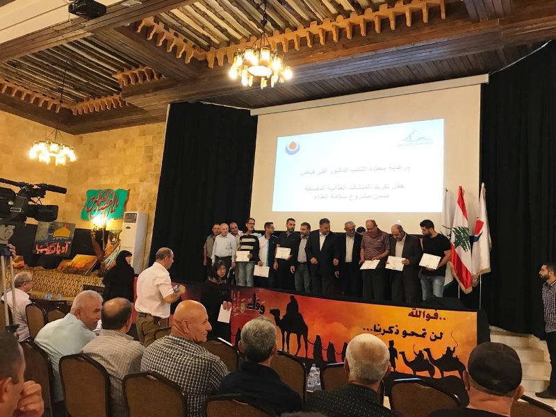 برعاية عضو كتلة الوفاء للمقاومة النائب الدكتور علي فياض، أقام اتحاد بلديات جبل عامل بالتعاون مع الهيئة الصحية الاسلامية، حفل تكريم أصحاب المنشآت الغذائية المصنفة ضمن مشروع سلامة الغذاء والتي تقع ضمن نطاق الاتحاد، وذلك في قاعة شهداء بلدة الطيبة الجنوبية، بحضور رئيس الاتحاد الحاج علي الزين، نائب مدير عام الهيئة الصحية الاسلامية المهندس مالك حمزة، رؤساء بلديات العديسة، رب الثلاثين، الصوانة، ديرسريان، حولا، وخبراء صحيون، وعدد من الفعاليات والشخصيات الاجتماعية.