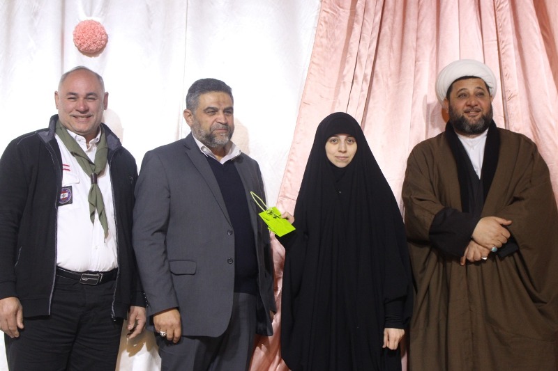 وفي الختام، تم سحب قرعة عدد من المنح لزيارة العتبات المقدسة في إيران وسوريا وهدايا للأخوات ليختتم الحفل بعدها بتواشيح إسلامية من وحي المناسبة