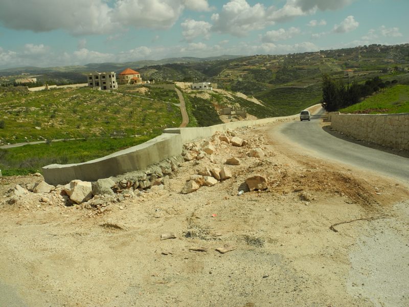 توسعة وبناء جدران دعم وتزفيت طريق برج قلاويه - الحجير , طول الطريق : 2900 م وعرض 7م.
