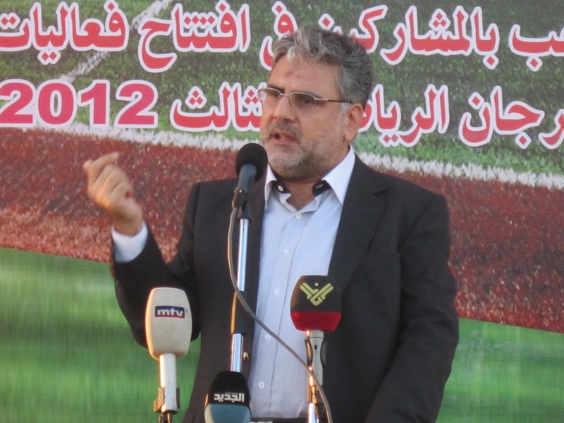 ونحن اليوم اذ نفتتح هذا المهرجان الرياضي الثالث في هذا الصرح الرياضي المميز، أشعر بكثير من الارتياح عند ملاحظة الاهتمام المتنامي ببناء المنشآت الرياضية، والتنافس الشريف بين البلديات عبر الاهتمام بالشباب واستقطابهم للرياضة، لما لذلك من أثر ايجابي في ابعاد ابنائنا عن الآفات الاجتماعية والصحية الخطيرة من جهة، ويساهم في تعبيد الطريق أمام الطاقات الرياضية المميزة للتقدم من خلال افساح المجال أمامها للانتساب الى الاندية.