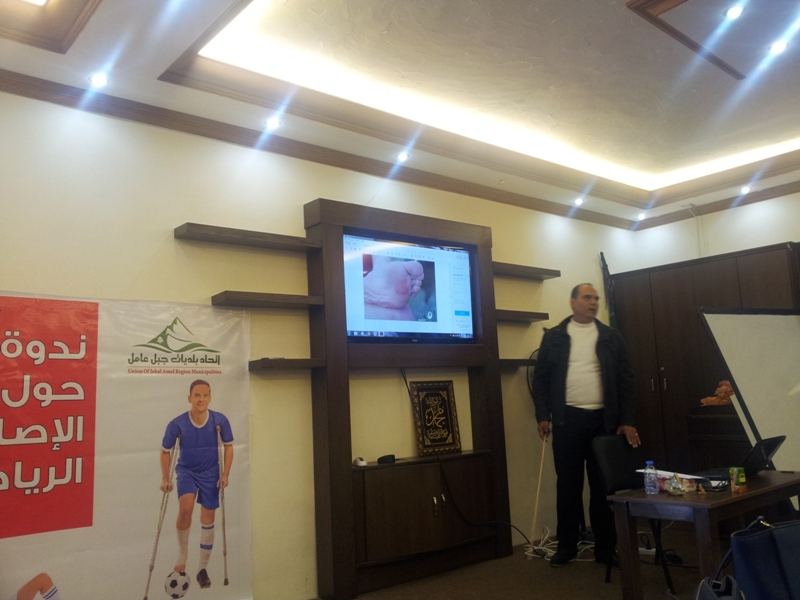 نظم اتحاد بلديات جبل عامل ندوة مميزة عن الاصابات الرياضية في قاعة بلدية طلوسة بحضور اكثر من 60مشارك من مسعفي الهيئة الصحية الاسلامية وجمعية الرسالة للاسعاف الصحي واساتذة التربية الرياضية ومدربين رياضيين من بلدات الاتحاد. وقد تركزت الندوة التي ادارها المختص في الاصابات الرياضية زهير عبود على انواع الاصابات في الملاعب وسبل تشخيصها اضافة الى العلاج المناسب لها.